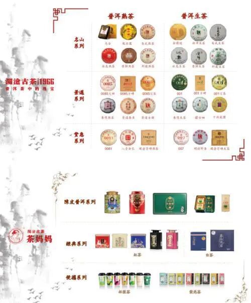 澜沧古茶品牌历史最久远可追溯至1996年云南景迈山,是一家以普洱茶生产、研发和销售为一体的综合茶企。澜沧古茶推出了1966、茶妈妈、岩冷3条产品线,以满足不同消费群体的需求。